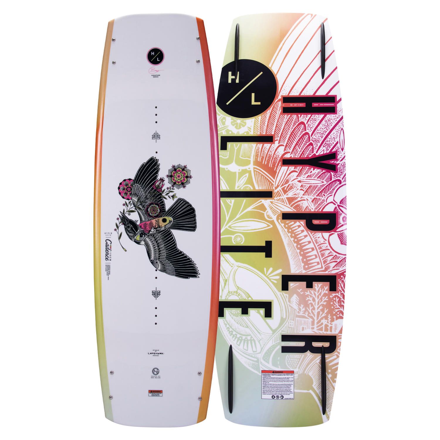 The Cadence series yields quick edge response and aggressive feel with massive pop off the wake shaped by Greg Nelson in conjunction with Bec Gange. The Cadence is a fast board incorporating a continuous rocker and slightly wider profile utilizing Hyperlite's Satin Flex for female athletes. The shape includes a subtle landing feature in the belly transitioning to dual concave tunnels exiting the tip & tail for an aggressive approach to the wake. The variable edge design is beveled between the stance platform for a forgiving feel sharpening at tip & tail for secure edging. Bec enjoys the explosive pop off the wake and effortless carving making it easy to link tricks back to back.